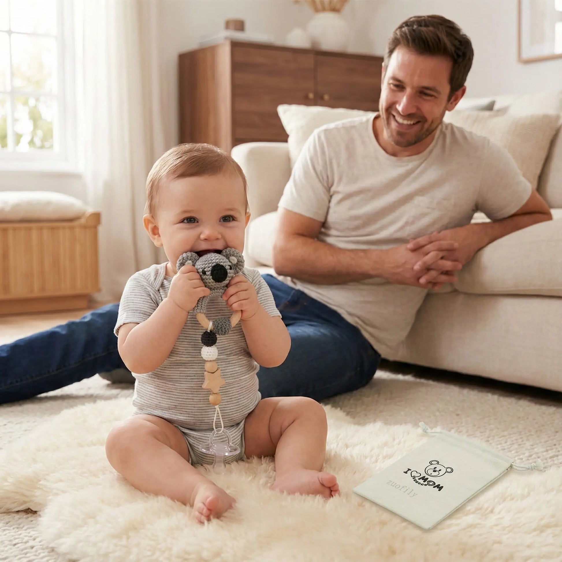 "Depuis que nous avons notre attache sucette en forme de renard, les crises de larmes ont diminué de moitié ! Plus besoin de chercher partout ou de stériliser constamment des tétines tombées par terre," nous confie Marie, maman d'Emma, 9 mois